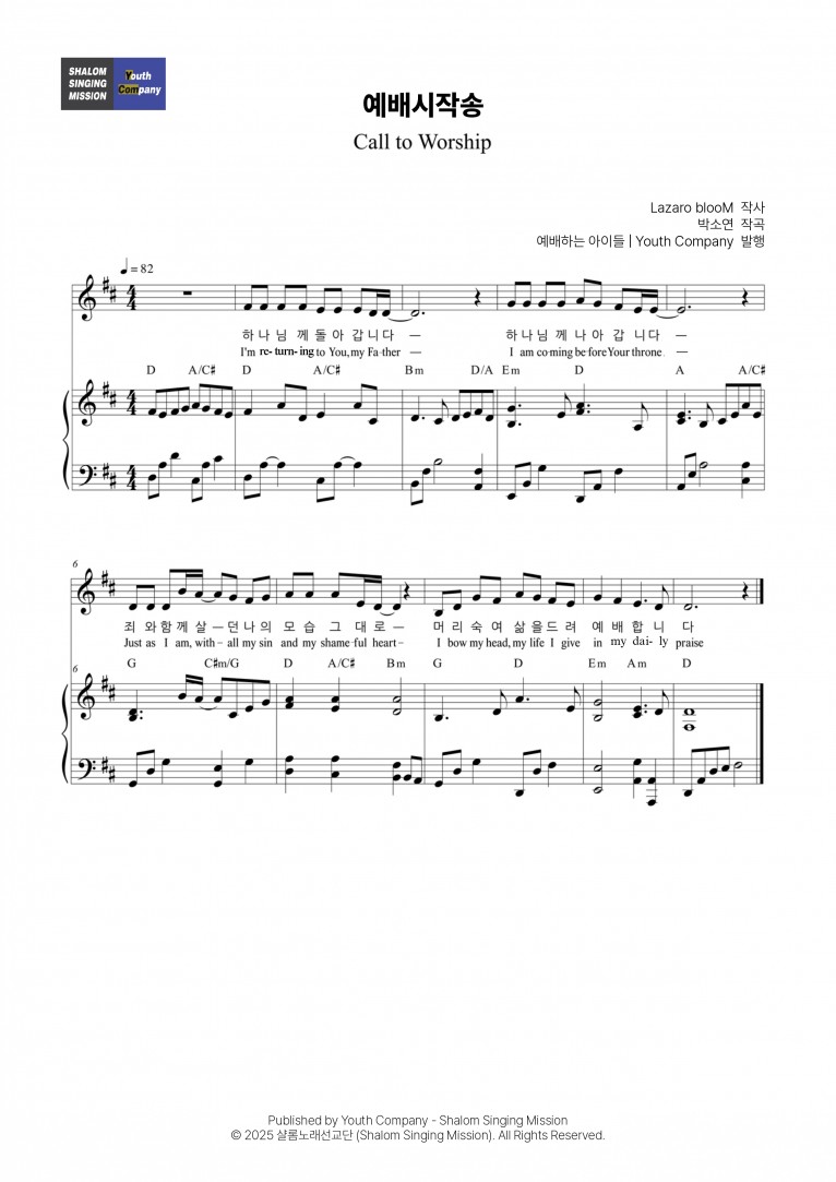 뮤직타임 [악보] 예배시작송 (Call to worship) - 예배하는 아이들 (예배하는 아이들 Vol. 1 - 예배)