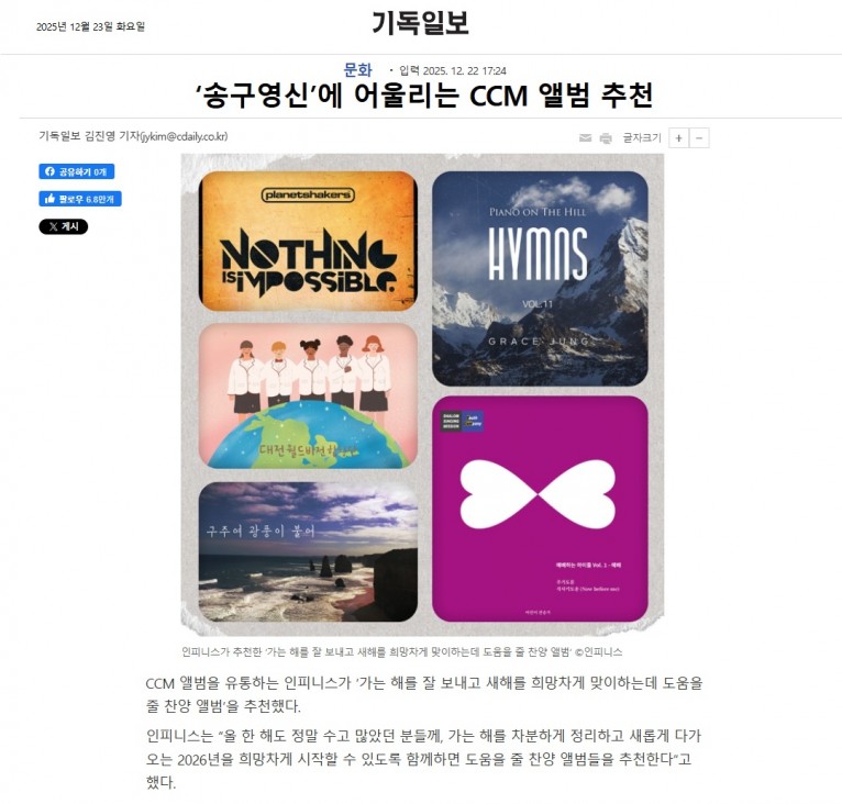 [기획기사] ‘송구영신’에 어울리는 CCM 앨범 추천(기독일보)